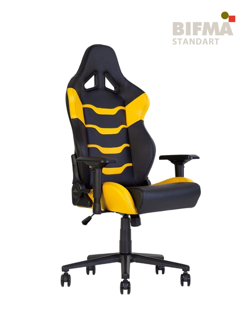 Кресло HEXTER RC (R4D Tilt MB70 ECO/02 черный/оранжевый) - серия передовых геймерских кресел от компании NowyStyl. Усиленные 4D-подлокотники, стальная крестовина, литая спинка и сиденье.Внутри спинки и сиденья кресла – стальная рама и цельнолитой пенополиуретан, который широко применяют в автомобильной промышленности. Удобство кресла также обеспечивают эластичные ремни, которые крепятся к металлической раме кресла, обеспечивая сиденью дополнительную мягкость.В креслах Hexter используется газлифт 4 класса, который выдерживает вертикальную нагрузку в 150 кг.Обивка кресла – Prime PU экокожа. В кресле установлены классический механизм качания Tilt с возможностью регулировки усилия при качании и реклайнинг 90-155 градусов – механизм независимого откидывания спинки. Кресло соответствует стандартам BIFMA.BIFMA  - американский стандарт работы и безопасности, разработанный Техническим Комитетом Bifma (США). Применяется в оценке эксплуатации офисных кресел для персонала и руководителей, и служит единой базой стандартизации по безопасности, долговечности и рабочих функций тестируемого изделия. Стандарт присваивается в случае успешного прохождения испытаний на вытяжение и гибкость, максимальное давление, ударопрочность, а так же на устойчивость к истиранию шарниров. Обязательным тестом является проверка на максимальную устойчивость к давлению и изгибанию подлокотников, растяжению спинки, функционированию роликов.