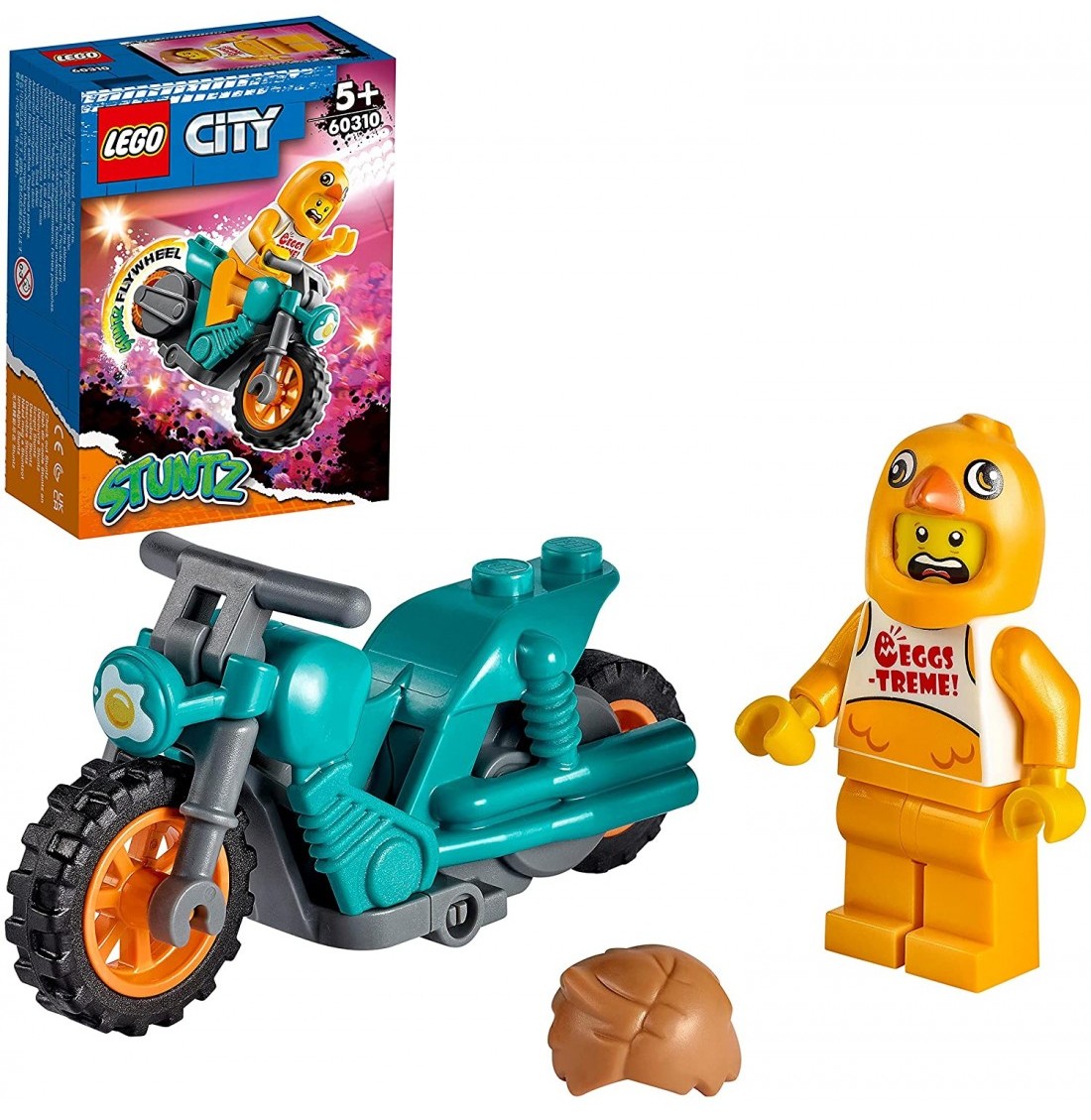 - Игрушка «Трюковый мотоцикл с цыплёнком» LEGO® City — это замечательный подарок на Новый год, день рождения или просто без повода для любителей каскадёров и детей в возрасте от 5 лет.