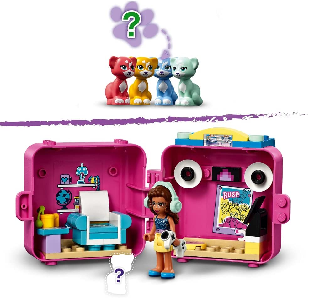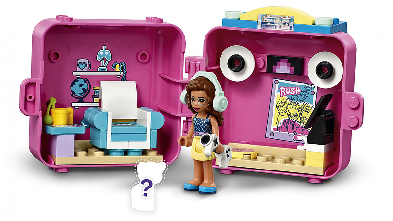 - Этот игровой кьюб вдохновляет на творчество, и в него входит мини-куколка Оливии LEGO Friends, игрушечную кошку одного из четырех различных цветов, уютное кресло, колонки, наушники, телевизор и кружку.