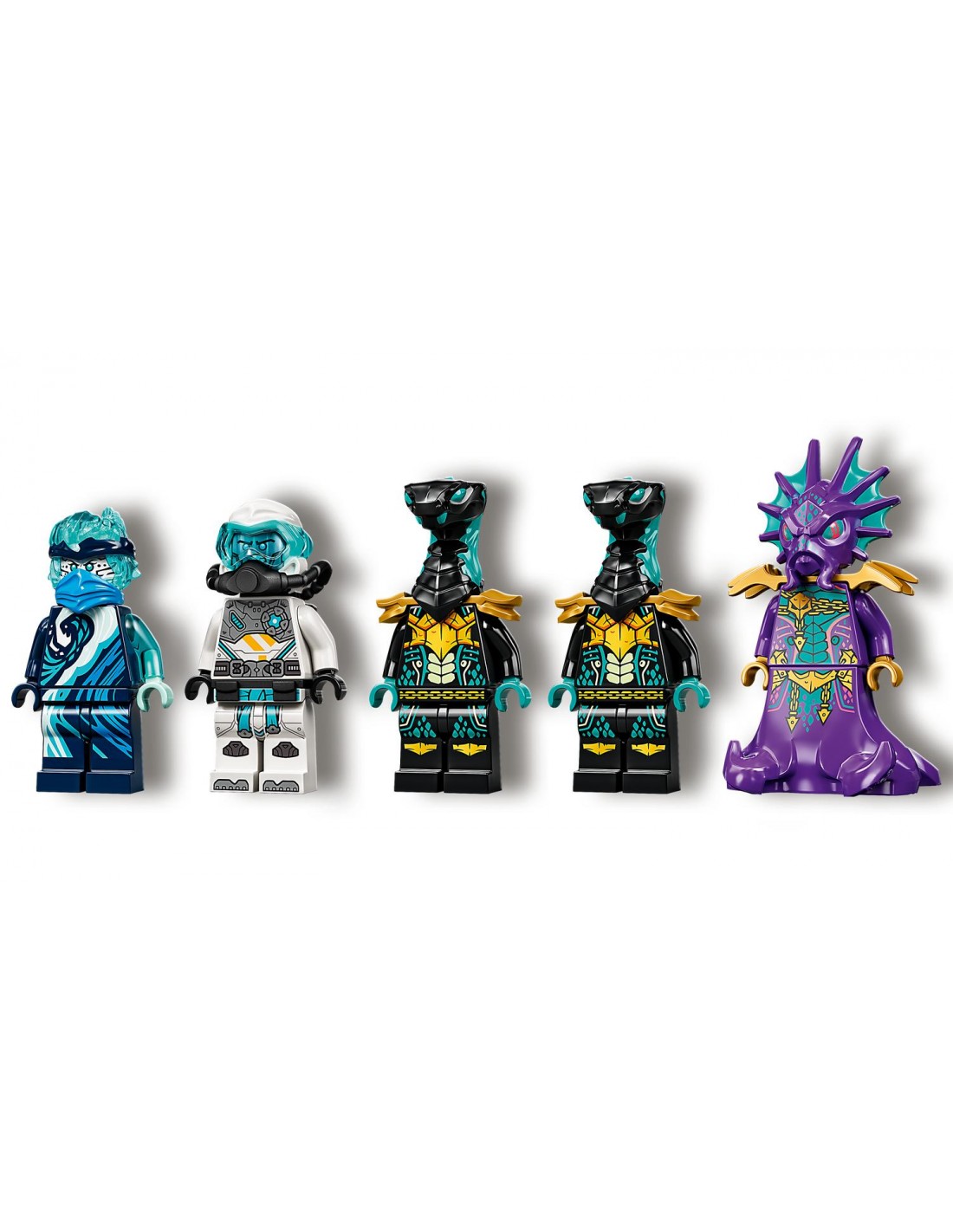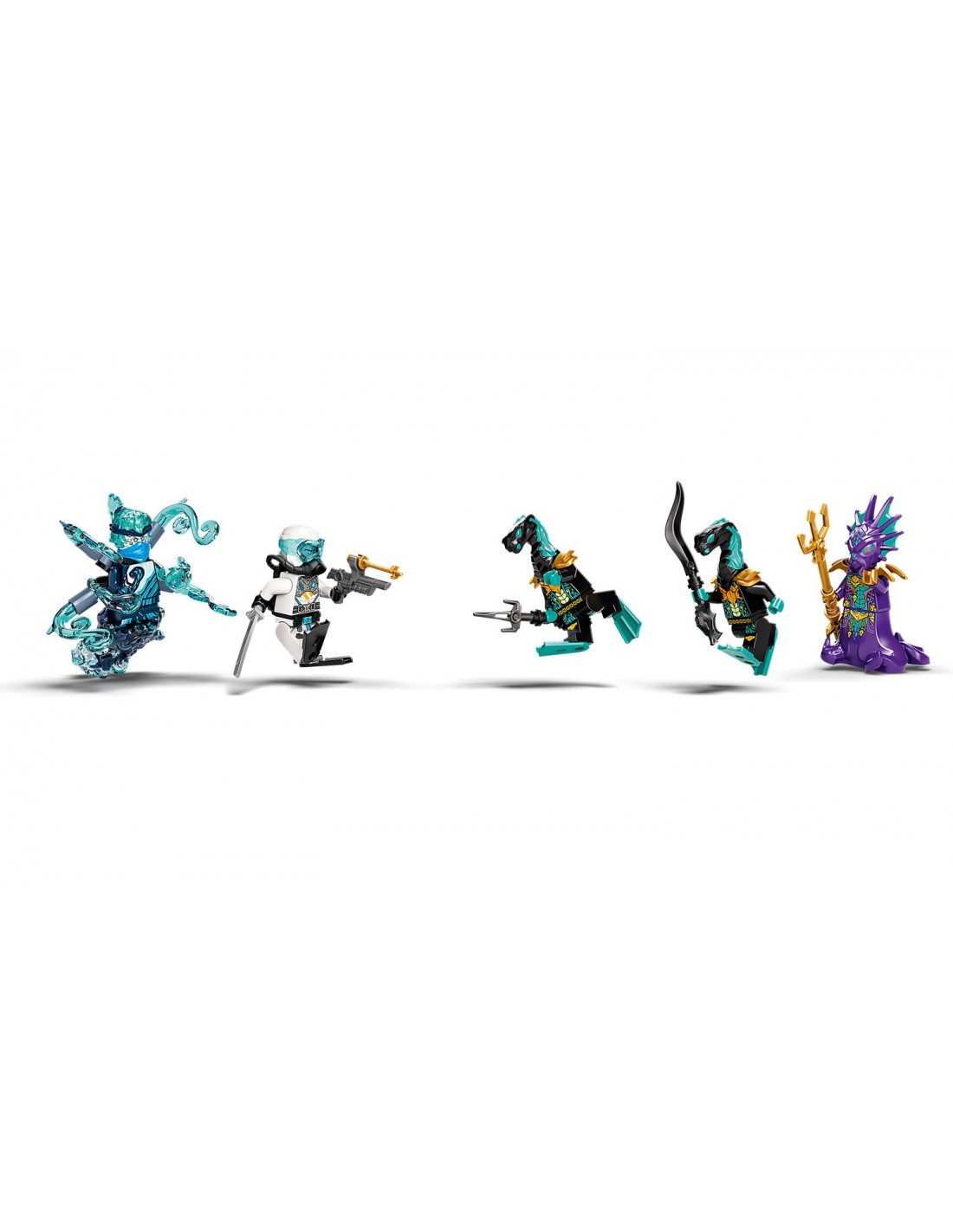 - В набор входят пять минифигурок: Энерджи Ния, Зейн с аквалангом, Принц Кальмаар и два Маарайских стража. Все они вооружены крутым оружием, чтобы добавить дополнительное измерение детской ролевой игре.