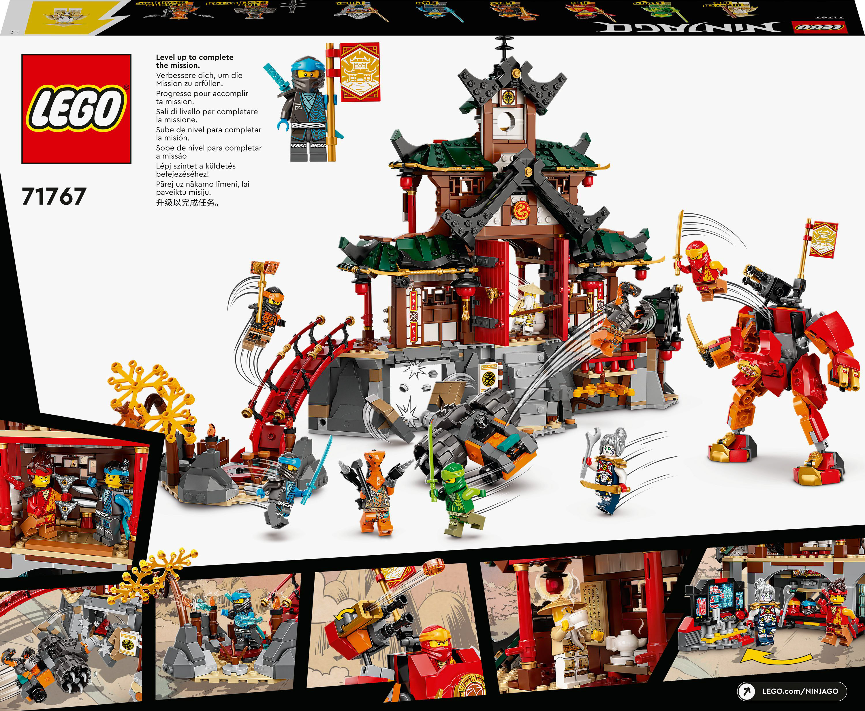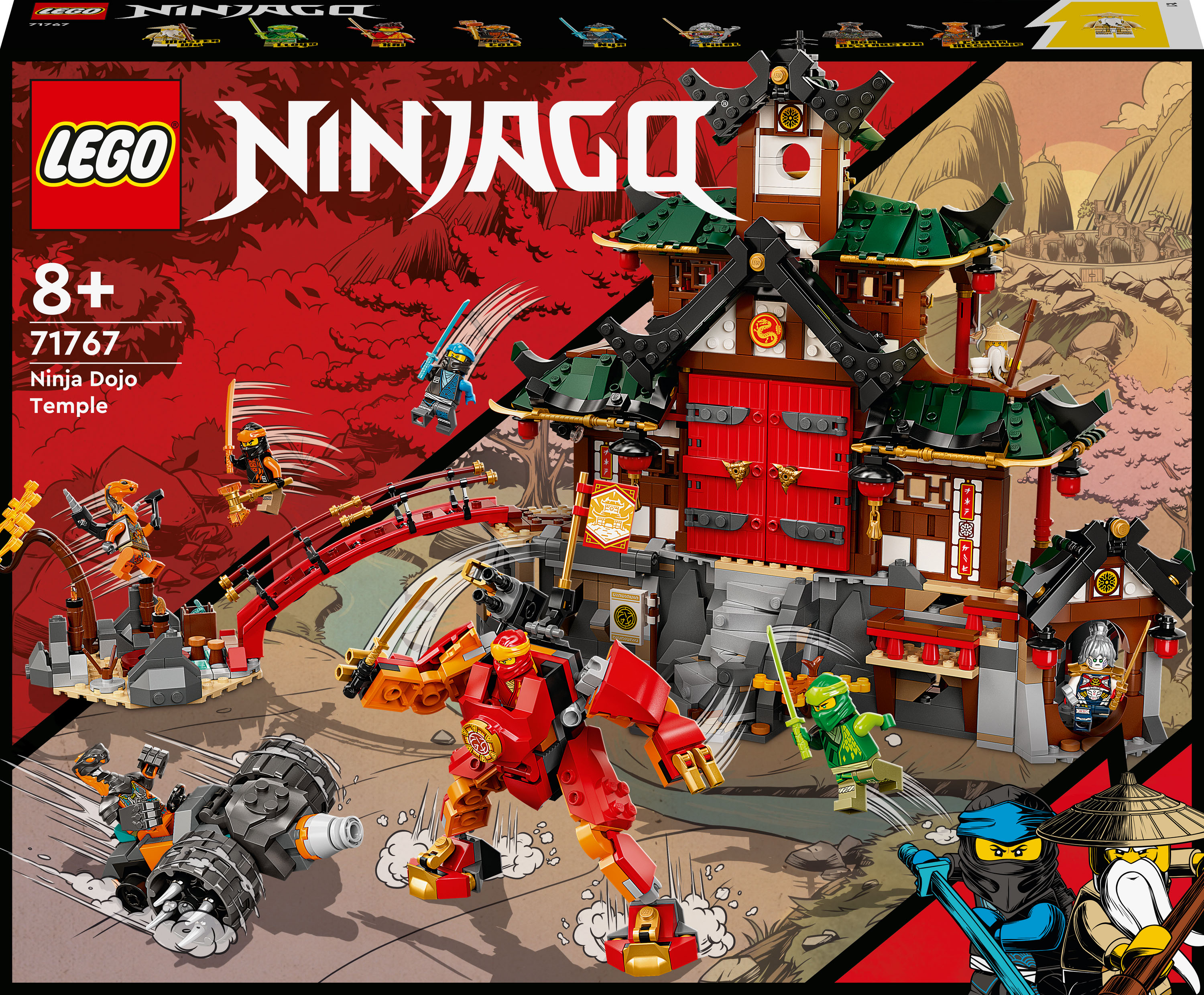 - Игровой набор с додзё ниндзя — дети смогут тренировать своих героев в трёхэтажном храме-додзё ниндзя LEGO® NINJAGO® (71767) с тренировочной площадкой и пятью помещениями.