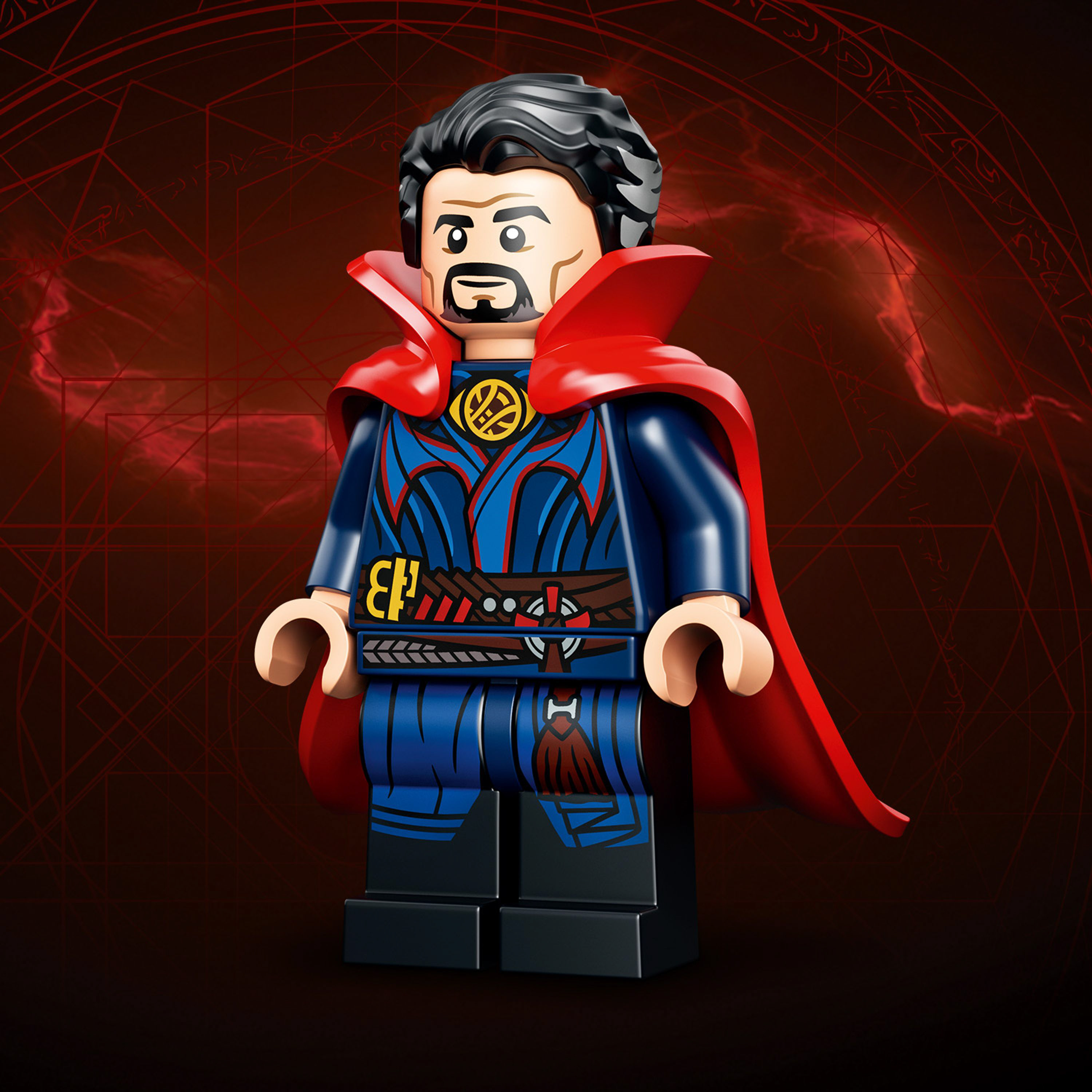 - Популярные персонажи — набор содержит 3 минифигурки: Доктор Стрэндж в снимающемся плаще, Вонг и Америка Чавес. Также в нем есть сборный монстр с шарнирными щупальцами.