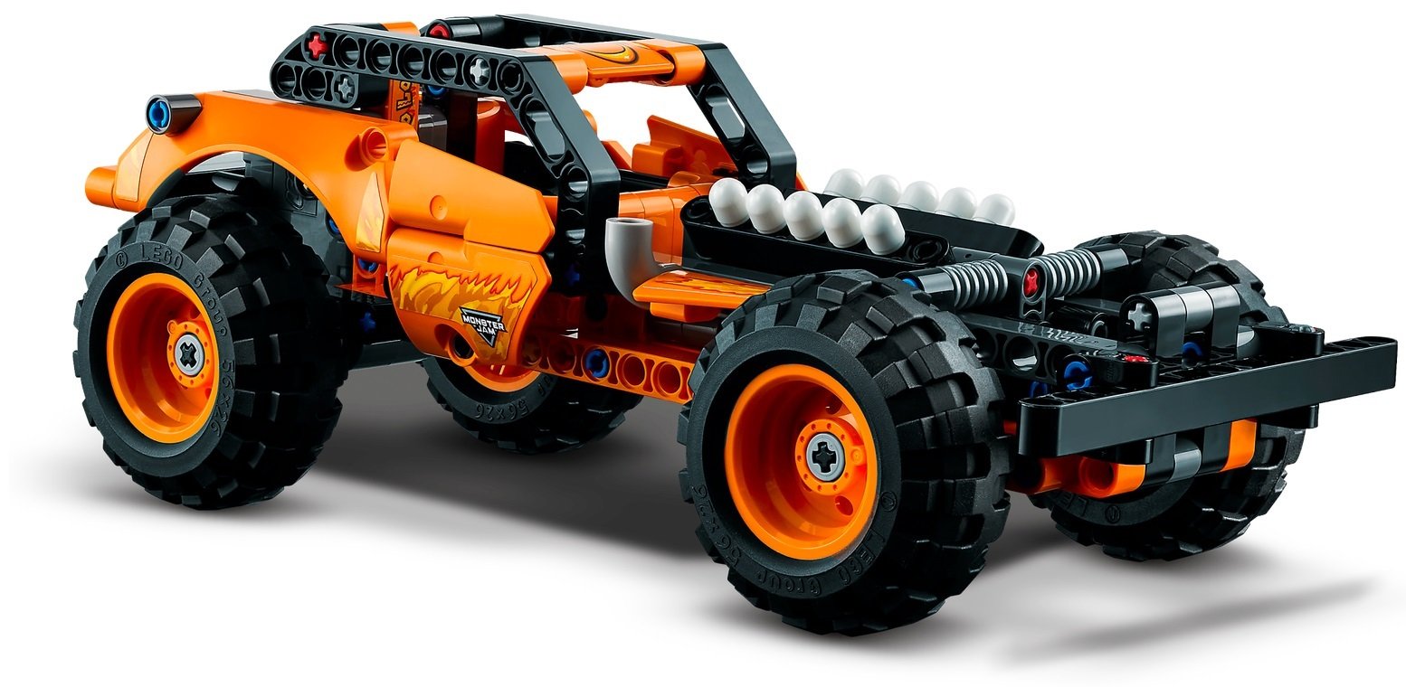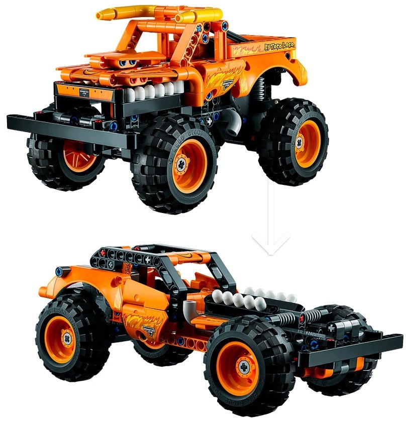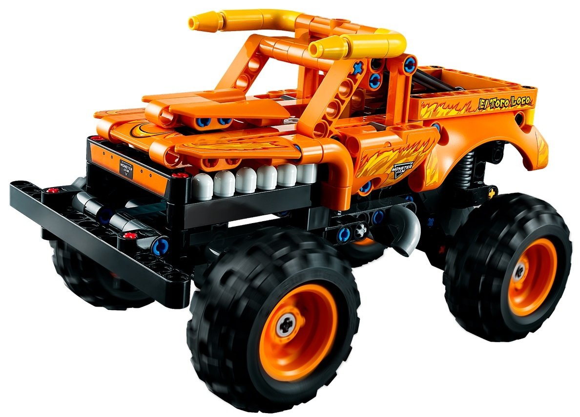 - Аутентичные детали — как и у настоящего Monster Jam™ El Toro Loco™, у этой игрушечной версии LEGO® Technic есть рога, кольцо в носу, зубы и огненные рисунки, которыми славится реальный грузовик.