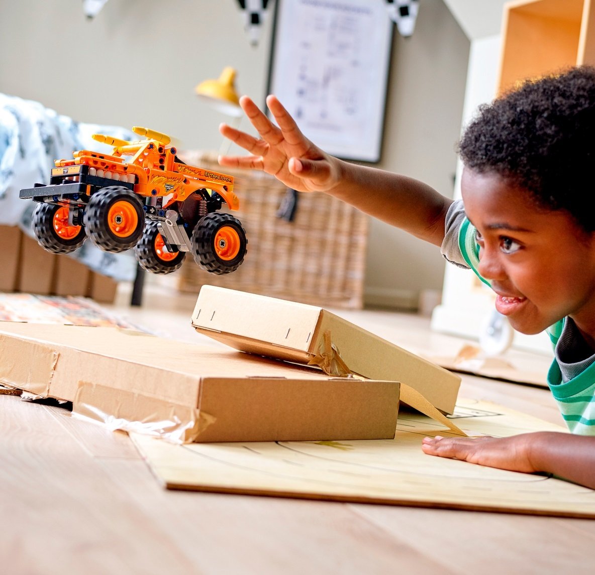 Если на арене один из самых знаменитых грузовиков Monster Jam™, El Toro Loco™ (42135), то это гарантия захватывающего представления. Теперь с этим динамичным набором для сборки дети в возрасте от 7 лет смогут воссоздать любимый монстр-трак в виде модели LEGO®. Поклонники знаменитого грузовика будут рады увидеть рога, кольцо в носу, зубы и огненные рисунки — совсем как у оригинала. При помощи инерционного механизма дети могут отправить игрушечный монстр-трак в гонку, или построить свои собственные трамплины, чтобы воссоздать крутые трюки.