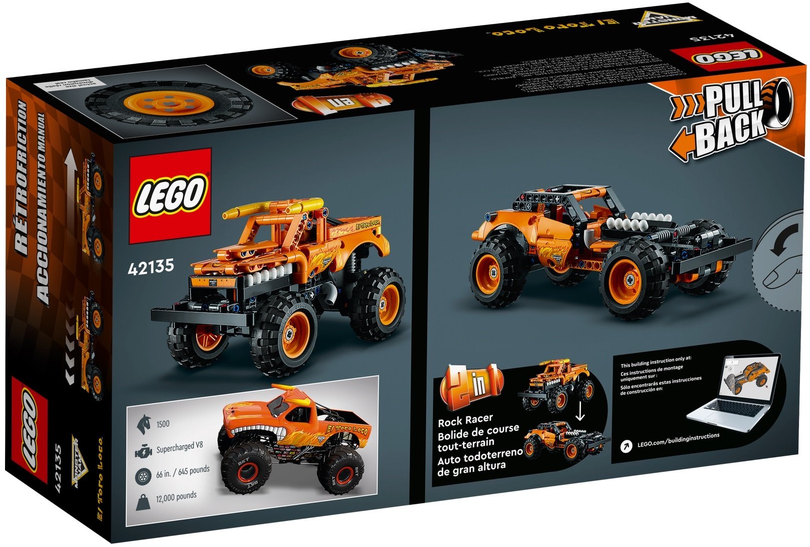 - Идеально для фанатов монстр-траков — детям понравится собирать и гоняться на этом игрушечном монстр-траке Monster Jam™ El Toro Loco™ LEGO® Technic (42135). Благодаря инерционному механизму эта игрушка «2 в 1» обеспечит часы веселья.