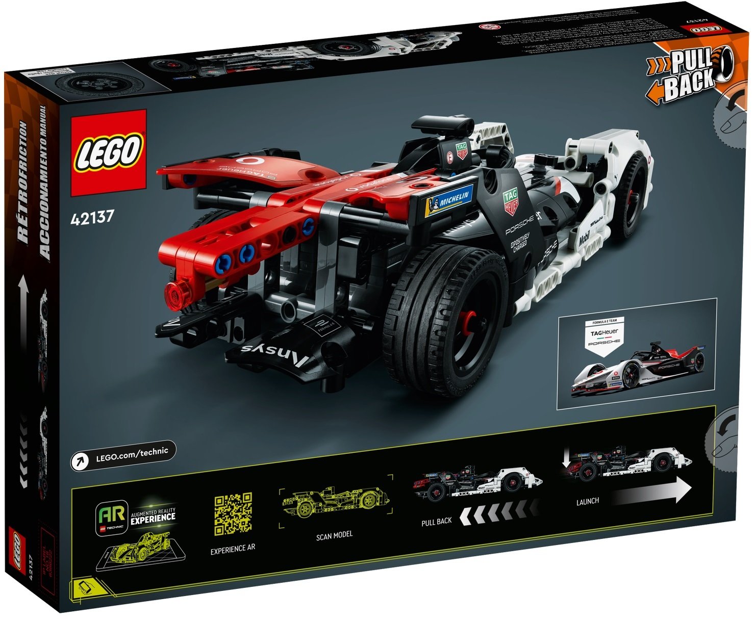 Этот набор Formula E® Porsche 99X Electric LEGO® Technic (42137) с быстрой машиной с инерционным мотором станет лучшим подарком для поклонников гонок Formula E® и Porsche в возрасте от 9 лет. Детям понравится захватывающая сборка гоночного болида Porsche во всех деталях, а с помощью двух инерционных моторов и приложения LEGO Technic AR они смогут погрузиться в азарт гонок.