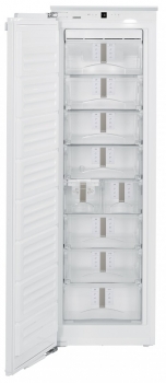 Встраиваемый морозильник класса Premium Liebherr SIGN 3576Система No Frost (Frost Free, Ноу Фрост)Время хранения при отключении питания: 16 чМощность замораживания: 18 кг/суткиСветодиодное освещениеАвтоматическая функция SuperFrost: автоматическое отключение через 65 часов (макс.)Выдвижные контейнеры: 9, 5 из них на телескопических направляющихМатериал полок: закаленное стеклоСистема VarioSpaceАккумулятор холода: 2Ледогенератор IceMaker со стационарным подключением к водопроводу 3/4"Производительность ледогенератора за сутки / запас льда: 0,8 / 1,5 кгДополнительная информация:Дисплей MagicEye с цифровой индикацией температурыУправление : сенсорноеИндикатор температурыСигнализация неисправности: оптическая и акустическаяFrostControlСигнализация неплотно закрытой двери морозильной камеры: акустическаяДоводчик двери с системой SoftSystemУровень шума: 37 дБУгол открывания двери: 115°Мебельная вентиляцияСпособ крепления двери: door-on-door (жесткое крепление)Габариты ниши для встраивания: 177.2-178.8х56-57х55 см