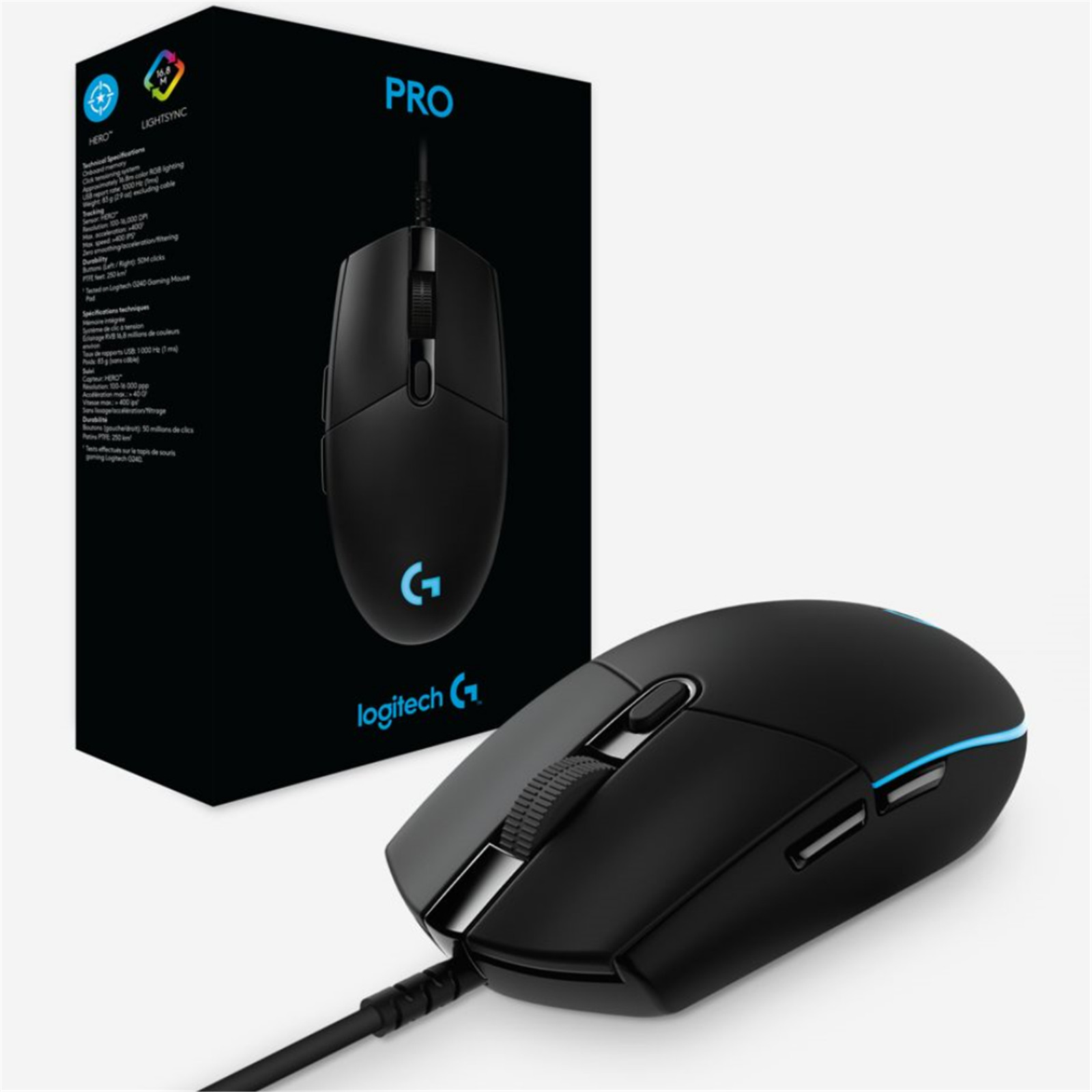 Logitech G Pro Hero Gaming Mouse, High-speed, HERO 16K Gaming Sensor, Mechanical Button Tensioning System, 6 Programmable buttons, 100-16000 dpi, LIGHTSYNC RGB, Onboard memory: 5 profiles