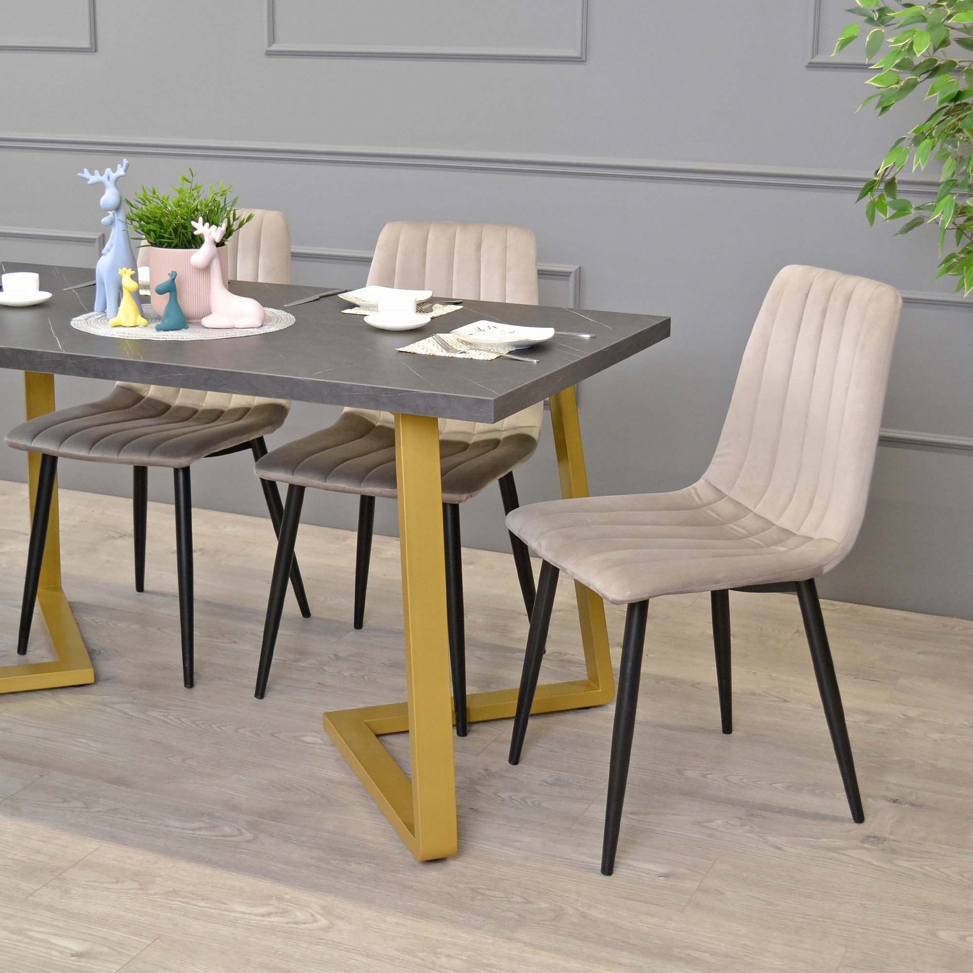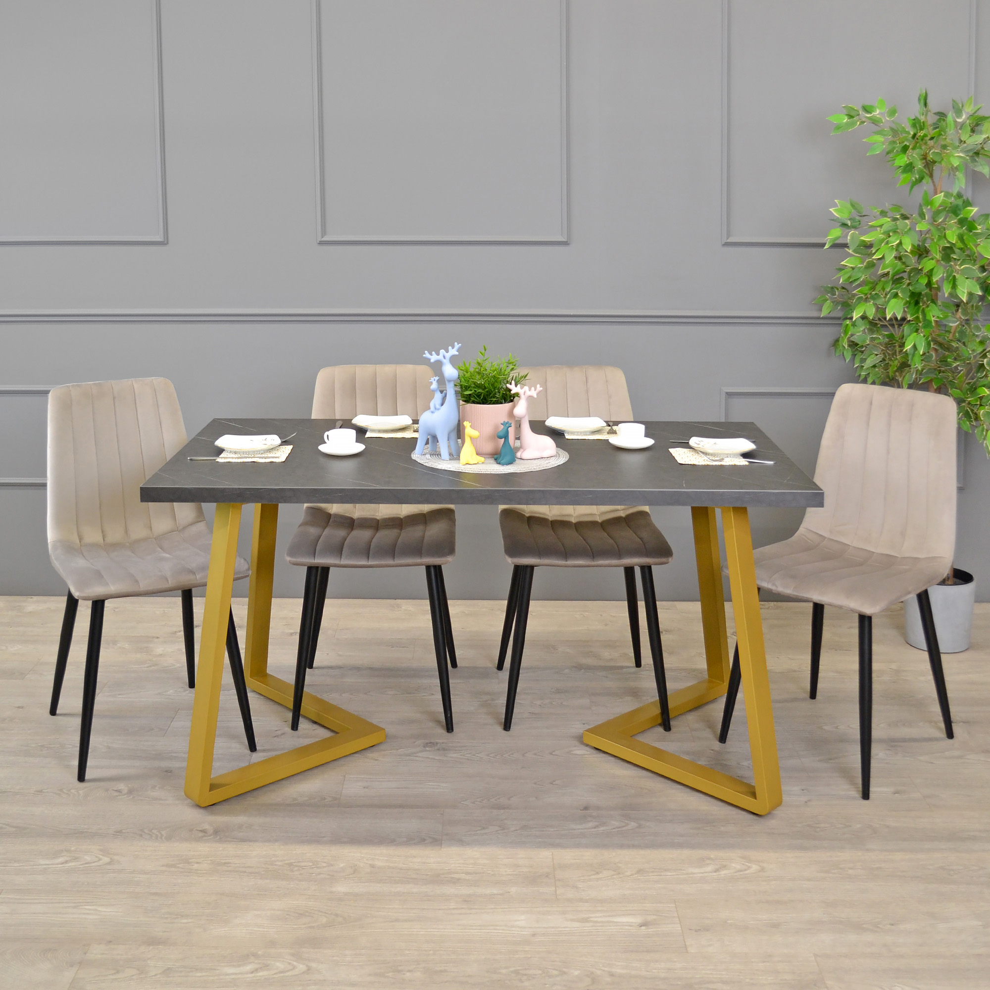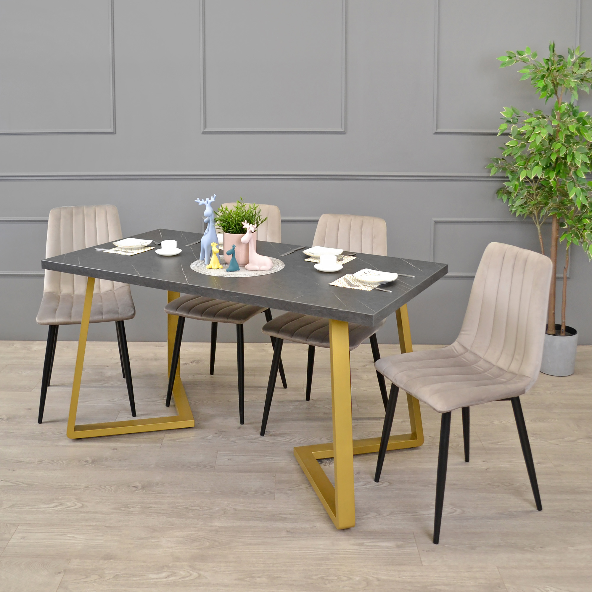 Masă FRIDA Marmură Neagră+Golden Legs 150x80