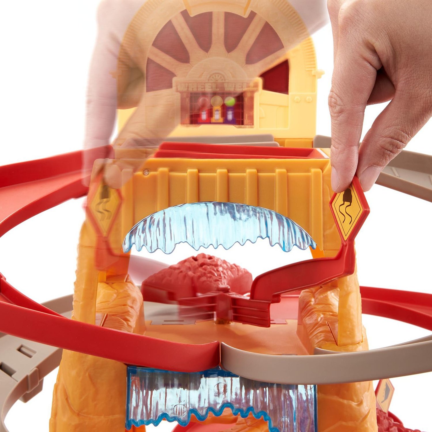 - Машинки Молния МакКуин и Джексон Шторм (входят в набор) промчатся вниз с горы сквозь водопад мимо мотеля “Уютный Конус”. Кто же первым финиширует у кафе “Восьмёрка”?