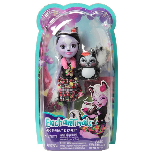 Mattel Enchantimals FXM72 Кукла с питомцем Скунси Седж new, 15 см