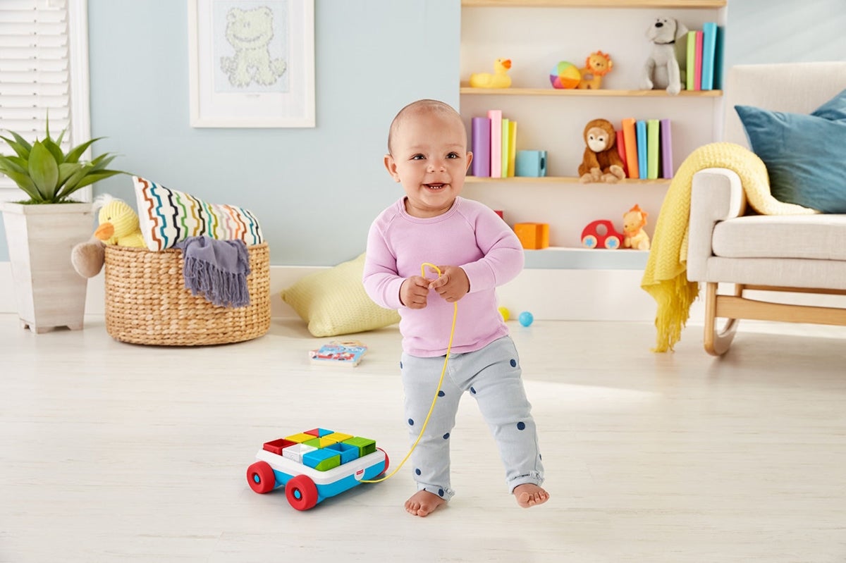 Когда малыш научится ходить, он может возить тележку за собой.