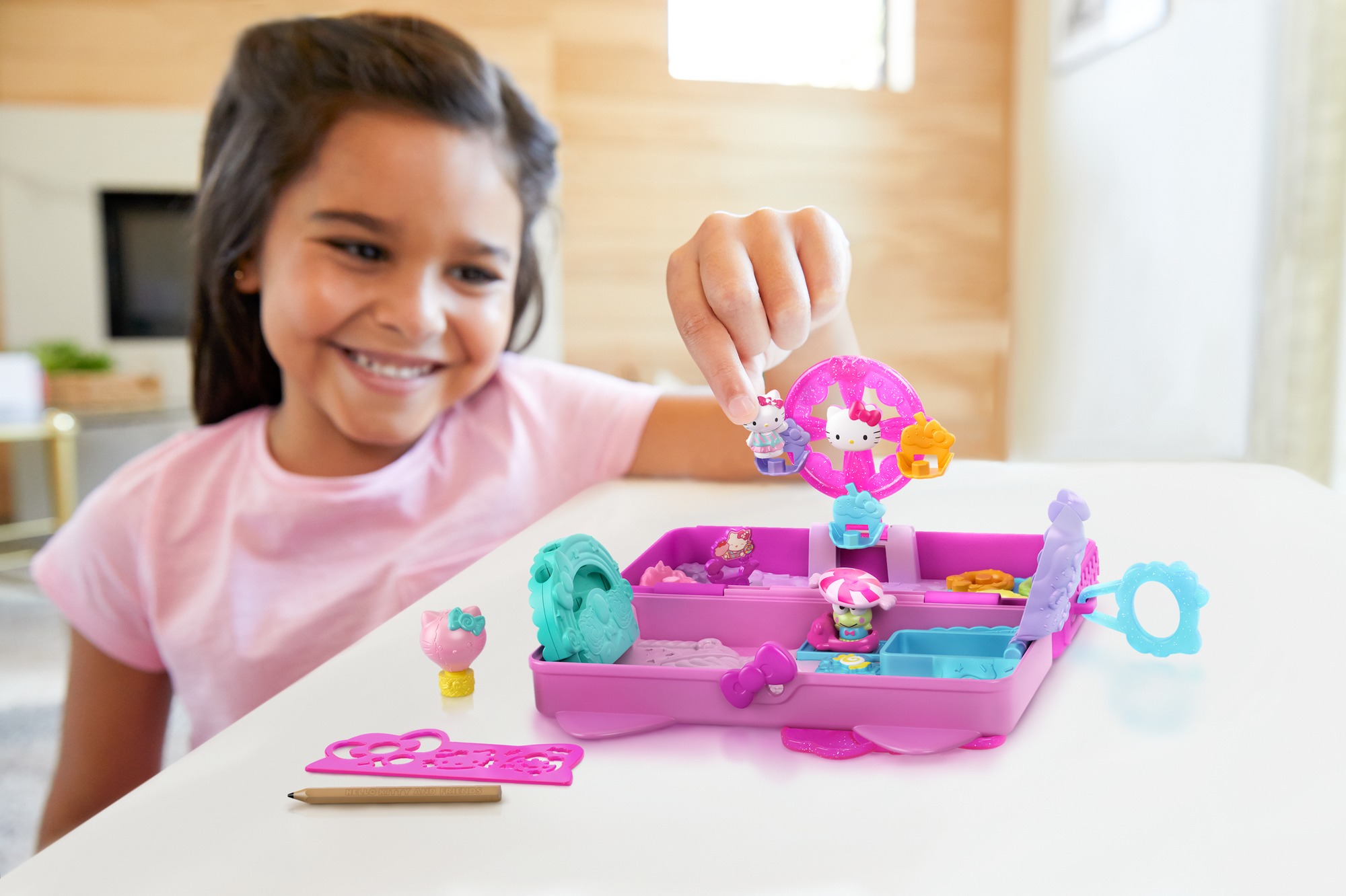 Пенал понравится девочкам в возрасте от 4-х лет. Внутри него есть замечательное колесо обозрения и различные аксессуары. Трафарет и карандаш понадобятся для того, чтобы создать великолепные рисунки.