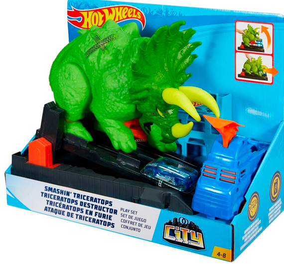 Mattel Hot Wheels GBF97 Автомобильный трек Опасный трицератопс