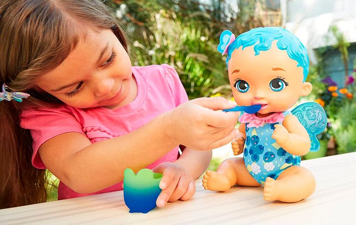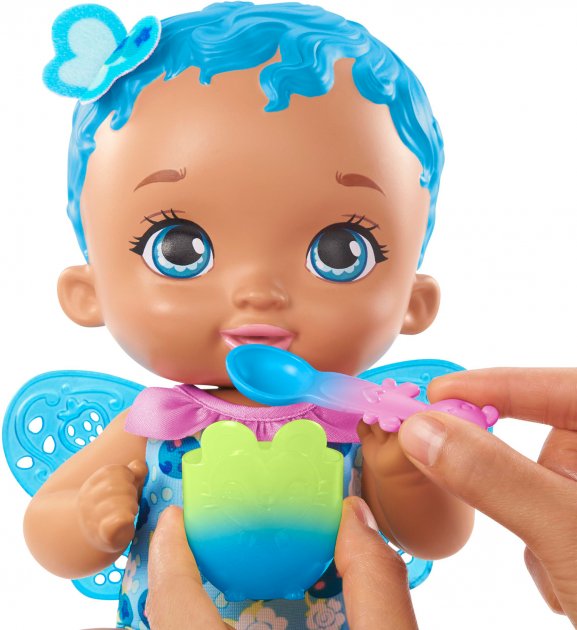 Куклу My Garden Baby можно "кормить" с ложечки и чашки - а если добавить немного холодной воды, они изменят цвет.
