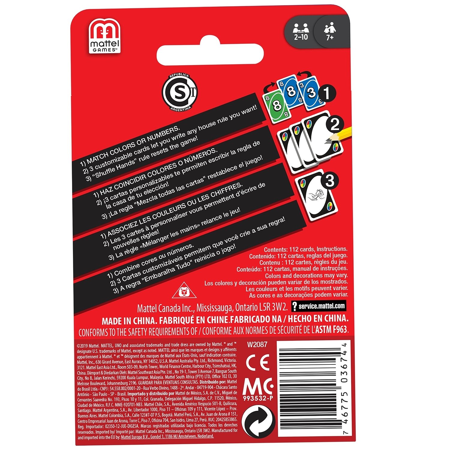 Mattel W2087 Настольная игра, карты уно "Uno-классическая"