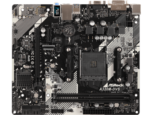 MB ASRock A320M-DVS R4.0, Socket AM4, AMD A320, CPU up 105W, Dual 2xDDR4-3200, APU AMD graphics, VGA, DVI, 1xPCIe 3.0 X16, 1xPCIe 2.0 X1, 4xSATA3, 1x