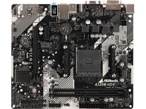 MB ASRock A320M-HDV R4.0, Socket AM4, AMD A320, CPU up 105W, Dual 2xDDR4-3200, APU AMD graphics, VGA, DVI, HDMI, 1xPCIe 3.0 X16, 1xPCIe 2.0 X1, 4xSATA