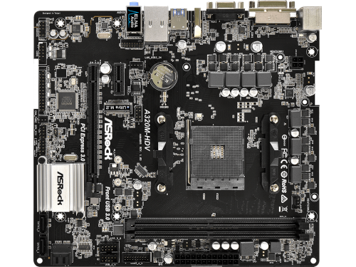 MB ASRock A320M-HDV, Socket AM4, AMD A320, CPU up 105W, Dual 2xDDR4-3200, APU AMD graphics, VGA, DVI, HDMI, 1xPCIe 3.0 X16, 1xPCIe 2.0 X1, 4xSATA3, 1
