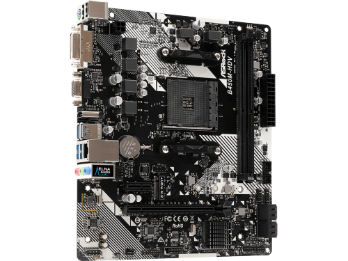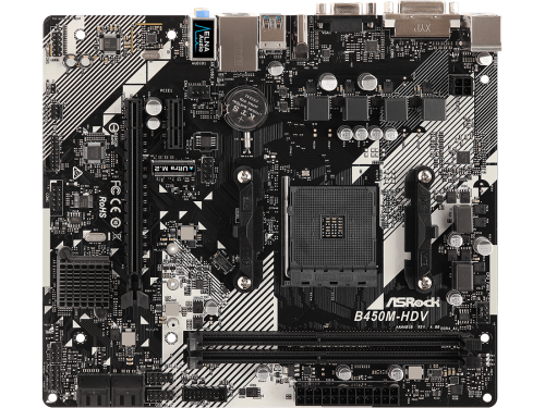 MB ASRock B450M-HDV R4.0, Socket AM4, AMD B450, CPU up 105W, Dual 2xDDR4-3200+, APU AMD graphics, VGA, DVI, HDMI, 4xSATA3, 1x Ultra M2, 1xPCIe 3.0 X16