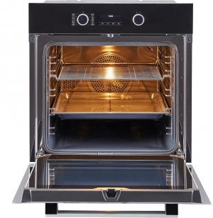 Удобство использования обеспечивает наличие пяти уровней приготовления, а также семисегментный дисплей EasyControl, который обеспечивает простоту управления и позволяет наблюдать за процессом приготовления. Особенностью данного духового шкафа является наличие системы пиролитической очистки. Это означает, что прибор самостоятельно очищает свою внутреннюю поверхность от жира и других загрязнений, что значительно упрощает процесс уборки.