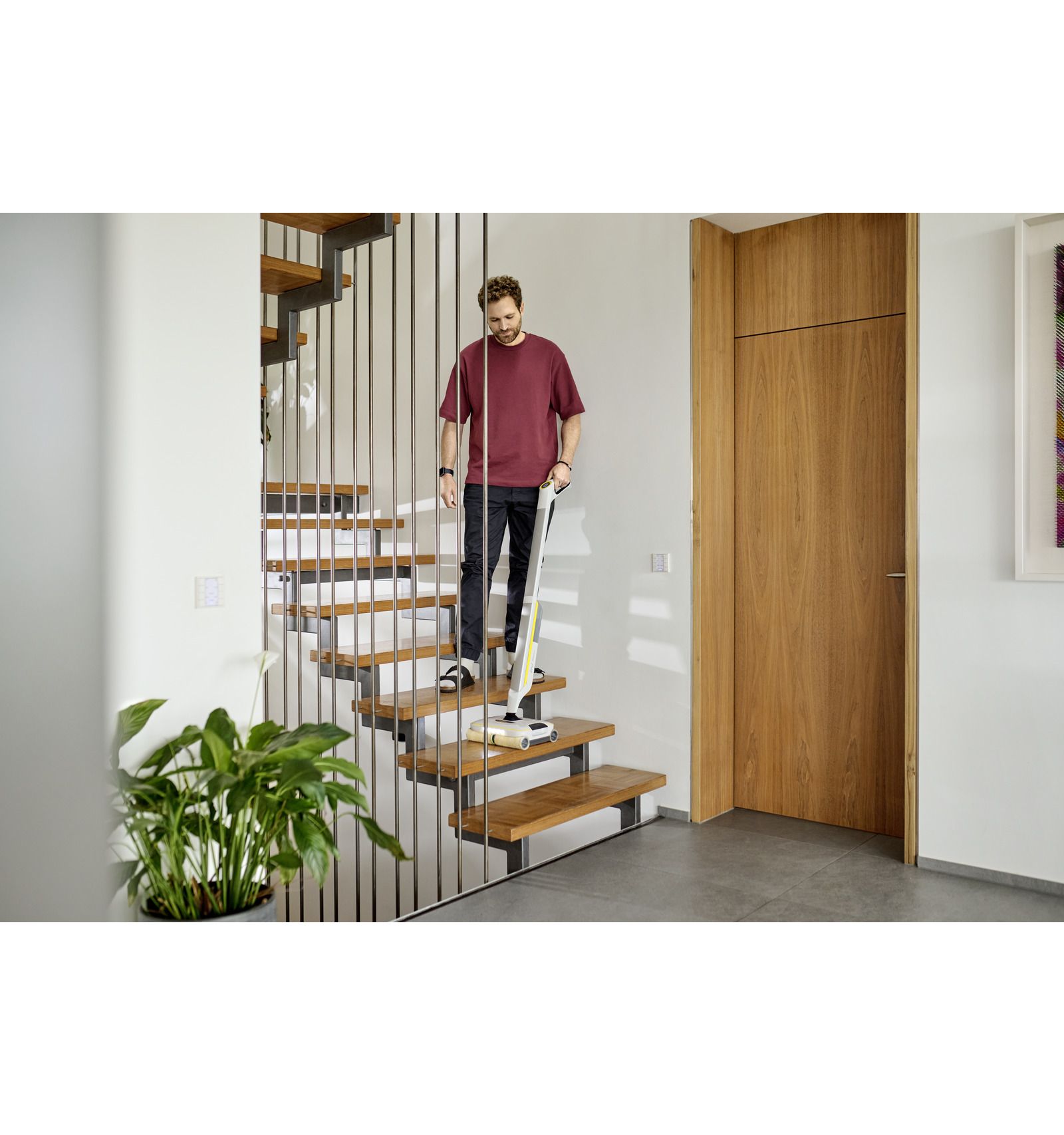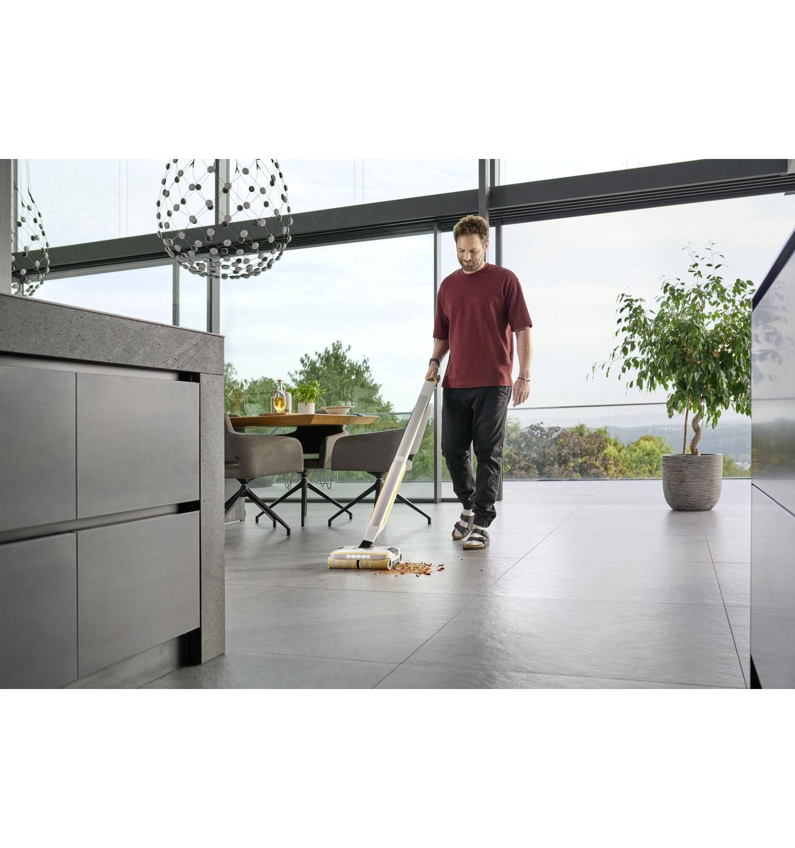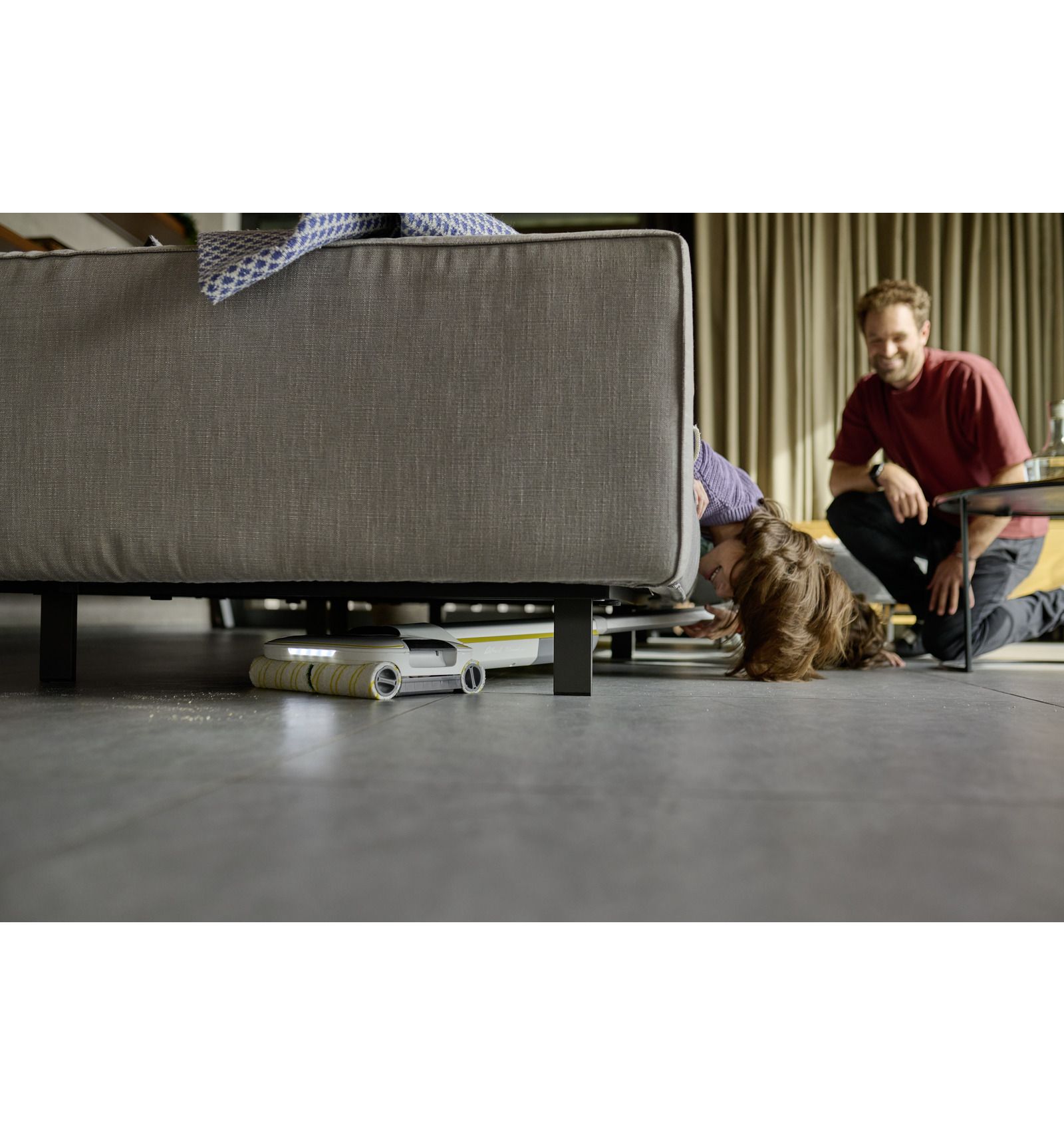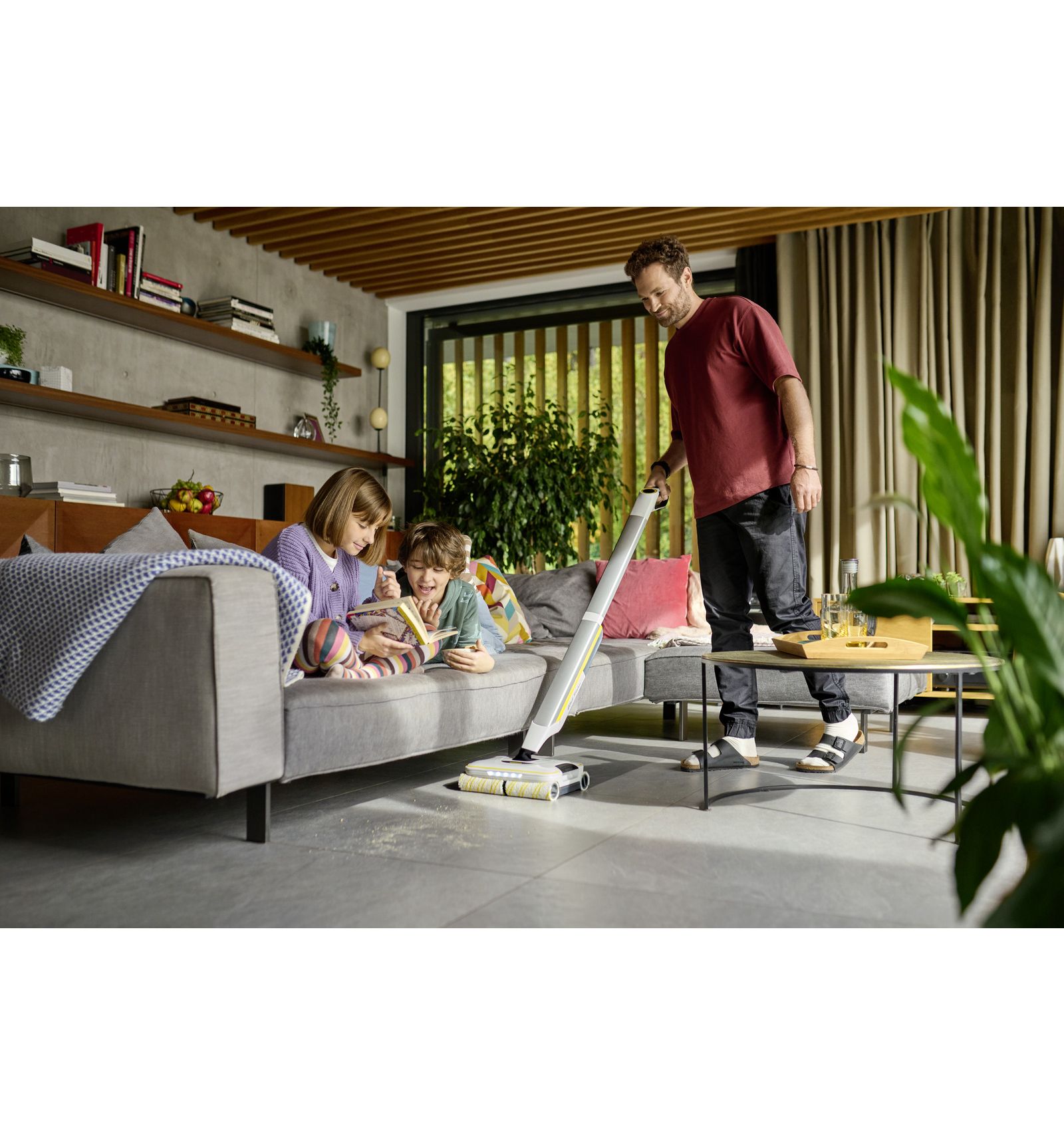 **Aparatele curatat podele Kärcher pot reduce la jumătate timpul de curățare, deoarece murdăria obișnuită din gospodărie poate fi îndepărtată de pe podelele dure într-un singur pas, eliminând necesitatea de a aspira înainte de a șterge.