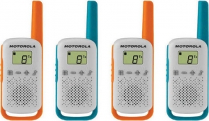 Комплект портативных раций Motorola T42 QuadПортативная рация Motorola Talkabout T 42 Quad - хороший девайс для всех, кто со всей серьезностью относится к стилю и простому разговору. Рация Моторола Talkabout T42 Quad гарантирует надежную связь с моментальными оповещениями одним нажатием клавиши. Простые, компактные и удобные рации для всей семьи. Вы можете пользоваться ими в магазине, на пляже или просто в саду — Моторола Talkabout T 42 Quad идеально подходит для того, чтобы оставаться на связи с вашей семьей на отдыхе.Безлицензионная радиостанция MOTOROLA Talkabout T42 Quad предоставляет владельцу мощность 0,5 Вт, целых 16 каналов связи и простую настройку группового вызова. Кнопки управления, расположенные прямо под экраном, будут понятны даже ребенку. На клавиатуру можно установить блокировку. Работает от батареек ААА (3 шт.) или аккумуляторов (докупаются отдельно). Одна рация из комплекта Моторола Talkabout T-42 Quad весит всего 79 г, что очень важно для маленьких ручек, а с помощью клипсы она будет прочно закреплена на поясе.Функция сопряжения помогает настроить связь в один момент, а затем разговаривать с семьей и друзьями по простому нажатию кнопки. С поддержкой 16 каналов, ЖК-дисплеем и дальностью связи на расстоянии до 4 км радиостанция Talkabout T42 Quad незаменима, чтобы оставаться в курсе событий и наслаждаться каждым моментом.Motorola Talkabout T-42 Quad – комплект, в состав которого входят две рации базового уровня. Они ярко выглядят, и их можно персонализировать с помощью прилагающихся к ним наклеек. Устройства подходят для использования во время игр, туристических походов и отдыха с родственниками или друзьями.Рация Motorola Talkabout T42 Quad позволяет всегда поддерживать связь. В любом месте устройство показывает хорошие свойства. В парке со своими детьми/на пляже, на отдыхе с друзьями или в дороге рация позволит поддерживать связь. Девайсы легко сопрягаются и поддерживают устойчивую связь на расстоянии до 4 км. Достаточно одного нажатия кнопки, чтобы обратиться к владельцу аналогичного прибора либо самому ответить на вызов. Важная информация выводится на яркий цифровой дисплей. Хватит одного взгляда, чтобы выяснить, на каком канале вы сейчас находитесь, каков уровень принимаемого сигнала и сколько энергии осталось в батарейках. Благодаря прорезиненному покрытию эта модель не выскользнет из ладони. Её можно носить на поясе, также предусмотрено крепление для шнурка.Парный комплект любительских раций от бренда Motorola станет отличным подарком не только для активных детей, но и взрослых, которые обожают простоту и яркость. Для Motorola Talkabout T 42 Quad не нужна лицензия. Радиус действия при отсутствии помех - 4 км. Легкость, простота эксплуатации и автономность – главные преимущества модели. Начните разговаривать сразу после нажатия кнопки!Motorola Walkie-Talkie TalkAbout T42, Quad, 16 Channels, 4km