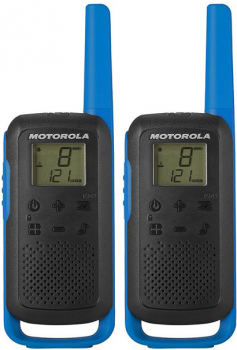 Комплект портативных раций Motorola T62 Twin Blue/BlackПолнофункциональный, прочный и стильный, Talkabout T62 — идеальный способ оставаться на связи во время приключений на свежем воздухе. Дома, в кемпинге, на фестивале или просто походы, Talkabout T62 поддерживает вас.Общие характеристики: Частотный диапазон: PMR446 Мощность передатчика: 0.5 Вт Шаг сетки: 12.5 кГц Каналы: 16 каналов + 121 субканал Масса: 161 г (с клипсой и аккумулятором) Радиус действия: до 8 км (в зависимости от местности и условий использования) Размер ШхГхВ: 5.4 х 16.5 х 3.1 смФункции: Дисплей с подсветкой "Свободные руки" (hands-free) Сканирование/мониторинг Быстрая синхронизацияКонструктивные особенности: Блок клавиатуры Индикатор заряда батареи Клипса Порт для зарядки micro USB Гнездо для гарнитуры 2.5 мм Совместимость со стандартными батареями ААСигналы: 20 тонов вызова Тон клавиатуры Тональный сигнал подтверждения / звуковой сигнал окончания режима передачиMotorola Walkie-Talkie TalkAbout T62, Twin, 16 Channels, 8km, Blue/Black