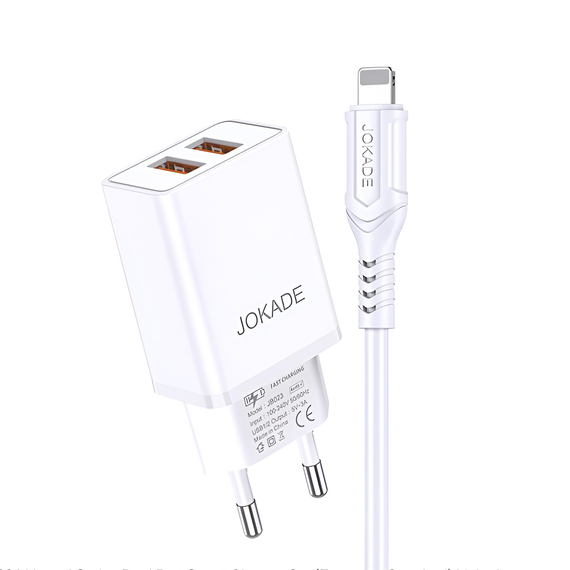 Настенное зарядное устройство Jokade с кабелем USB-A to Lightning Dual Port JB024 3A, белый
