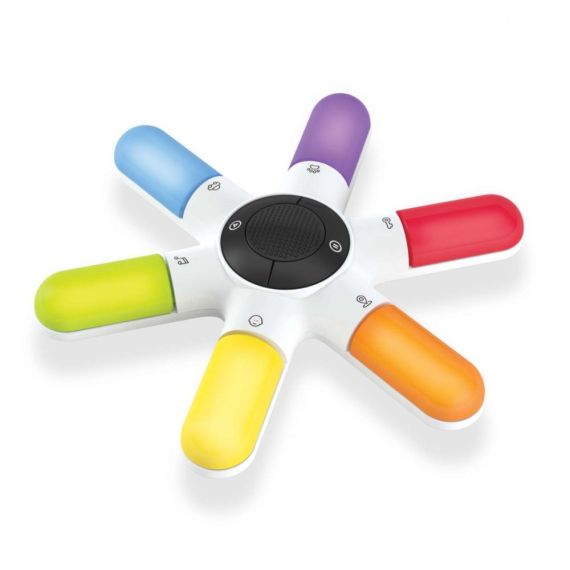 Устройство воспроизводит последовательность звуков, которые могут исходить из шести разных источников: люди, животные, предметы, транспортные средства, места и музыкальные инструменты. Запомните последовательность, затем нажмите цветные кнопки, которые соответствуют источникам, из которых поступают звуки, в указанном порядке.