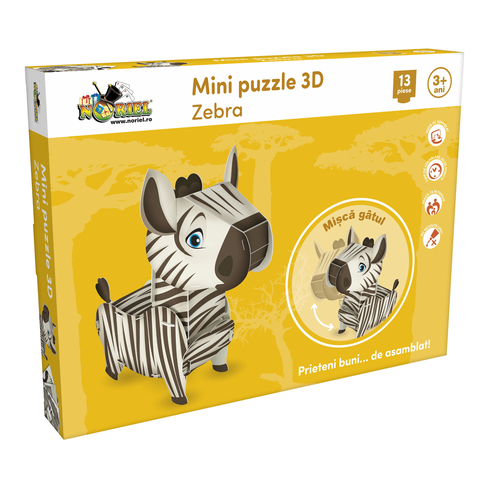 NORIEL NOR1191 - Мини пазл 3D "Зебра", 13 детелей