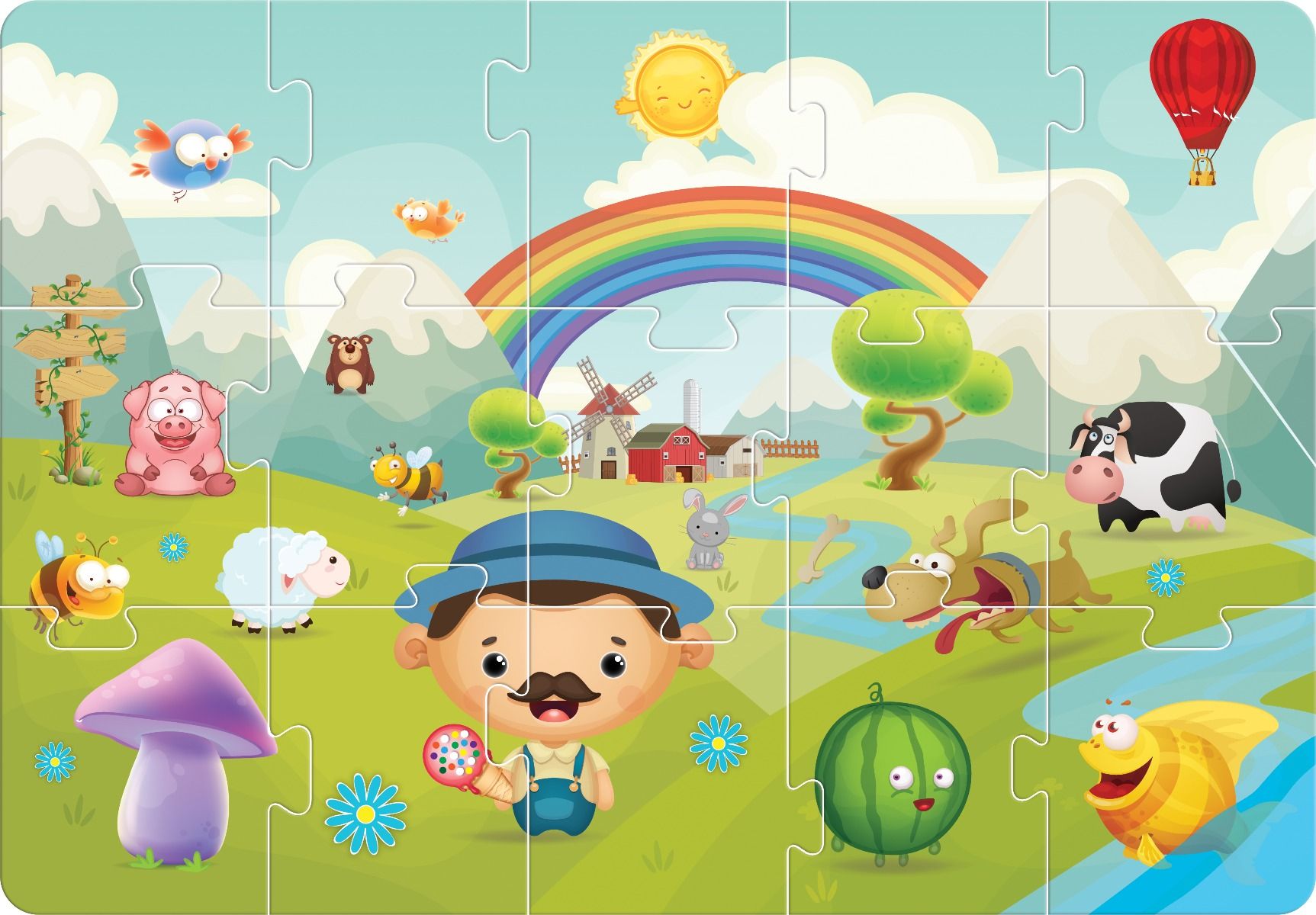 Пазлы из 15 деталей с оживленным пейзажем