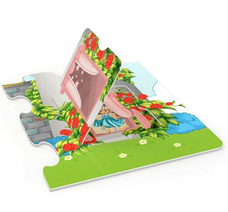 Это заколдованный замок, попасть в который можно не через дверь, а через окно! Соберите пазл, откройте окошки и узнайте историю, которая здесь живет!
