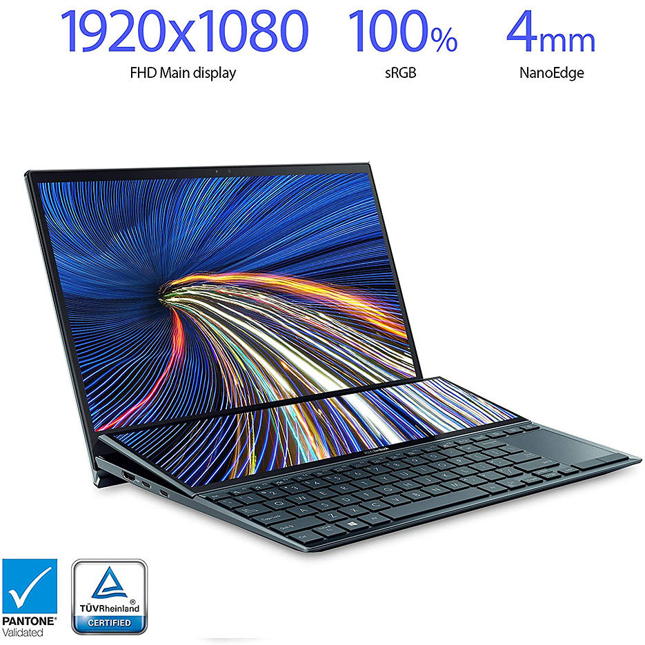 Ноутбук 14" ASUS ZenBook Duo 14 UX482EA Blue, Intel i7-1165G7 2.8-4.7Ghz/16GB/SSD 512GB/Intel Iris Xe/WiFi 6 802.11ax/BT5.0/HDMI/HD WebCam/Illum. Keyb/Screen Pad Plus 12.65"/14" Touchscreen IPS LED Backlit FullHD NanoEdge