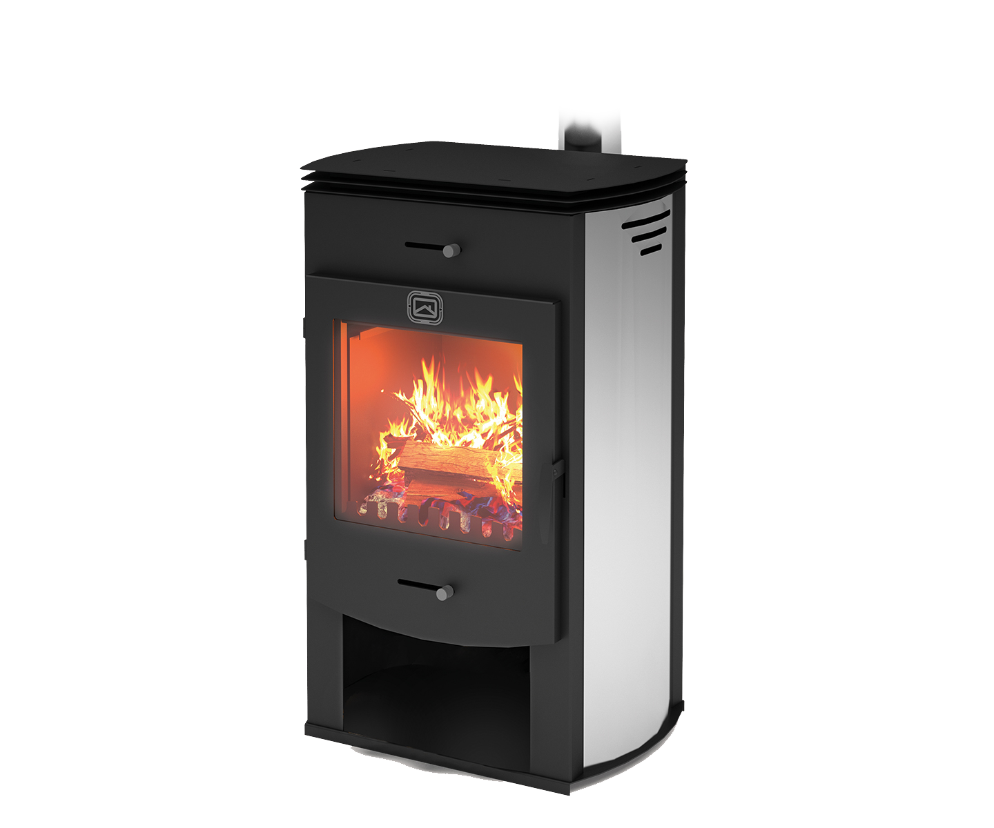 Компактный камин с большой диагональю стекла.