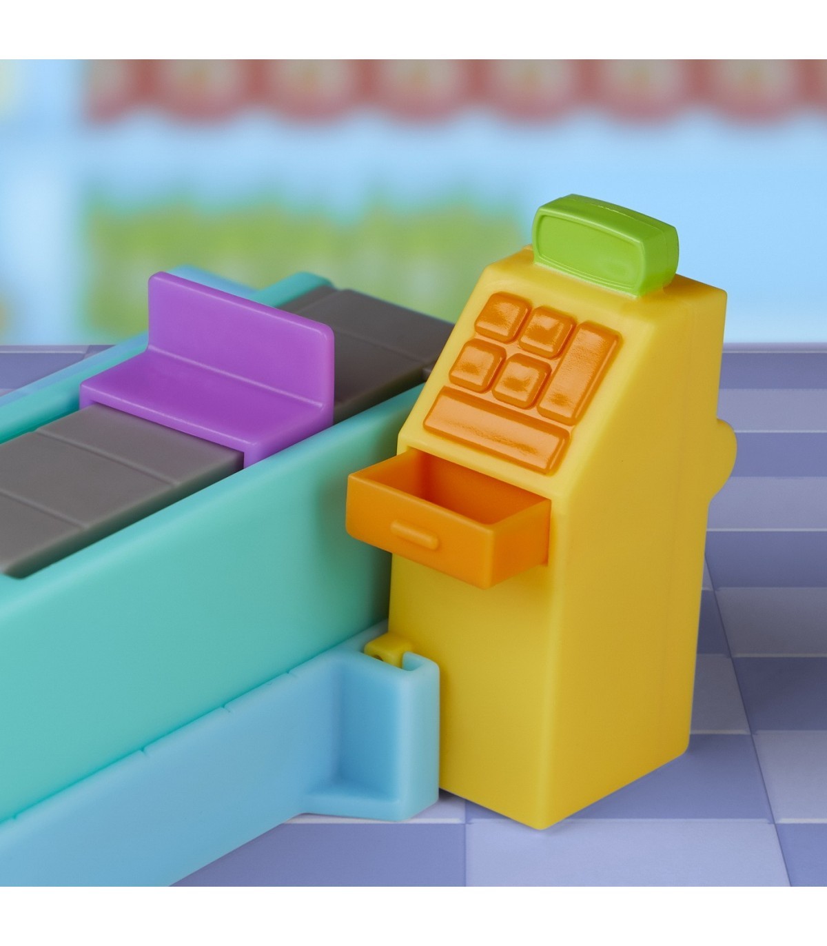 ? Поместите продукты на кассовую ленту, а фигурку установите на платформе. Подтолкните фигурку и лента с покупками начнет двигаться