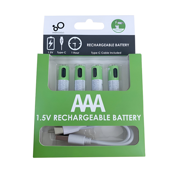 Перезаряжаемые литий-ионные USB-C аккумуляторы AAA 400mAh, 4шт с кабелем 2in1 Type-C