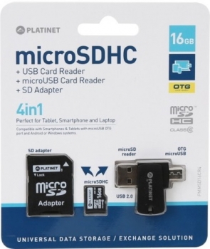 Platinet 16GB MicroSD Card + SD Adapter + OTG