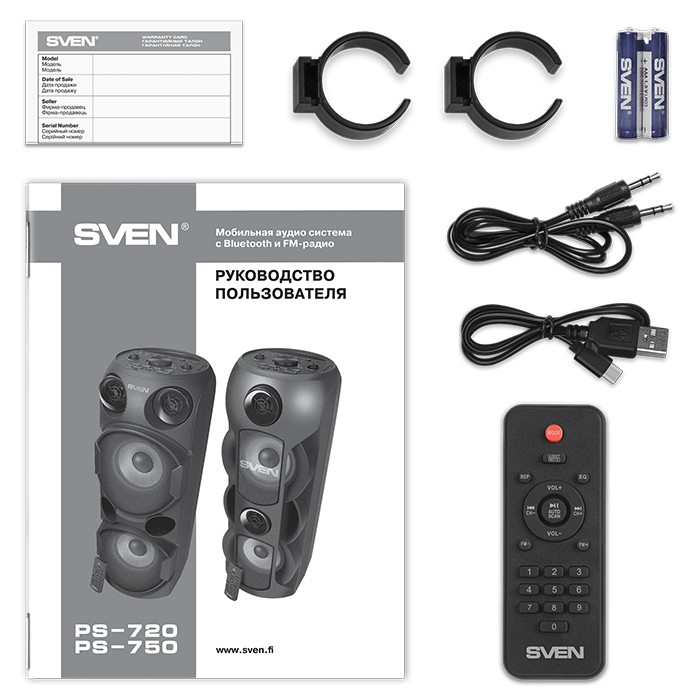 Портативная Колонка SVEN PS-750 Black / 50W / Bluetooth / FM tuner / USB / microSD