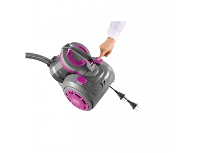 Пылесос (без мешка для сбора пыли) с контейнером First FA-5547-4-PU  • циклонный фильтр • емкость пылесборника – 2 литра  • металлическая телескопическая трубка с рабочей высотой до 116 см щетка для полов с твердым и ковровым покрытием • длина всасывающего шланга – 150 см • устройство автоматического сматывания шнура питания (длина шнура – 480 см) • 1 уровень силы всасывания • впускной и выпускной воздушные фильтры (HEPA) • Принадлежности: щелевая насадка «2 в 1» • Уровень шума < 80 dB(A) • 220-240 V • 50-60 Hz • 800 W
