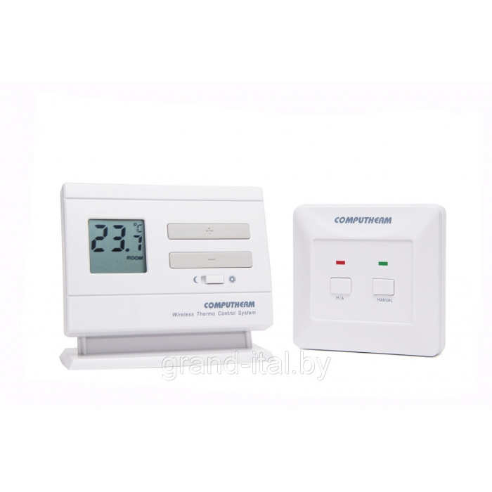 Термостат COMPUTHERM Q3 RF состоит из двух частей - свободно переносимого комнатного термостата и принимающего устройства, которое осуществляет управление котлом/кондиционером.