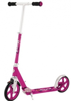 Самокат Razor A5 Lux Pink Razor А5 Lux — по-настоящему легендарный самокат. Возьмите огромные полиуретановые колеса в 200 мм, добавьте суперпрочную надежную раму и качество Razor — все это A5 Lux. Меньше толчков — больше движения! Если вы ищете надежный складной городской самокат, то покупка A5 Lux будет самым правильным решением.Подходит для детей и взрослых ростом от 100 до 200 смВес самоката 3,86 кгМаксимальная нагрузка 100 кгБольшие полиуретановые колёса 200 ммЛёгкая прочная рама из авиационного алюминияПрочный руль из авиационного алюминия шириной 46 смВся площадь деки покрыта противоскользящей шкуркойПрочная подножка для удобной парковки самокатаСкладывается и раскладывается в 3-х положенияхДлина самоката 87 см, длина деки 53 см, ширина деки 11,5 см"Полезная" длина деки (место для ног) 32 смМинимальная высота руля от земли 76 см; от деки 69 смМаксимальная высота руля от земли 97 см; от деки 90 смДорожный просвет (клиренс) 4 см