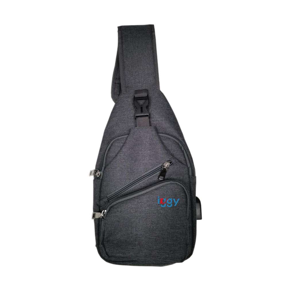 Rucsac Sling Iggy, polyester,1 bretea, 1 compartiment principal, 2 compartimente frontale, 32x16x6.9cm, mufa USB incarcare+cablu, gri,"IGSL-SLING-GY"