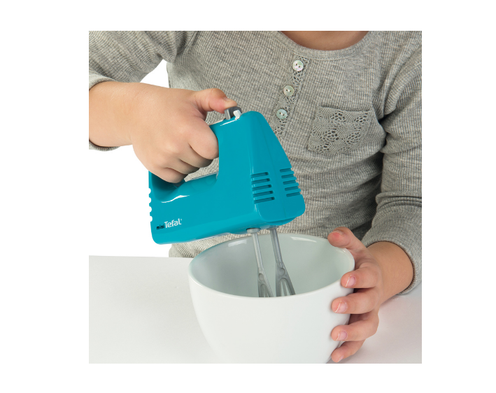 - Эта яркая игрушка является миниатюрной копией миксера от торговой марки Tefal.