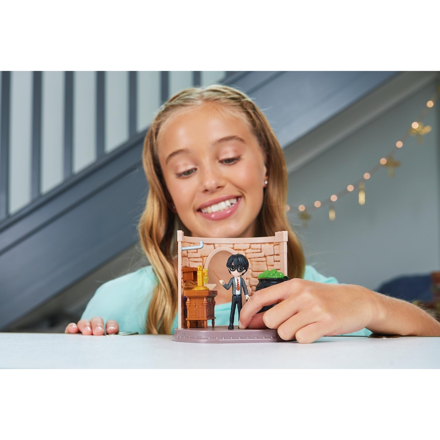 - ВОЛШЕБНЫЙ КОТЕЛ: Поместите фигурку Гарри Поттера над точкой активации, и котел волшебным образом откроется и в нем вспыхнет пламя!