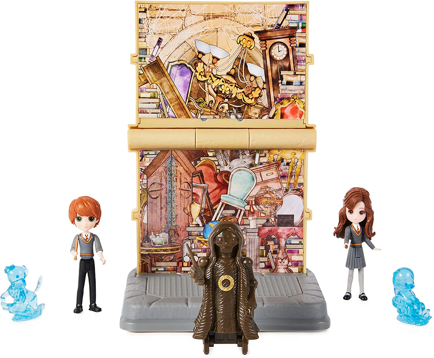 - РЕАЛИСТИЧНЫЕ И ДЕТАЛЬНО ПРОРИСОВАННЫЕ ПЕРСОНАЖИ: Помогите Гермионе и Рону найти Исчезающий шкаф! Обе фигурки подвижны и могут двигать головой и руками, а также принимать сидячую позу.