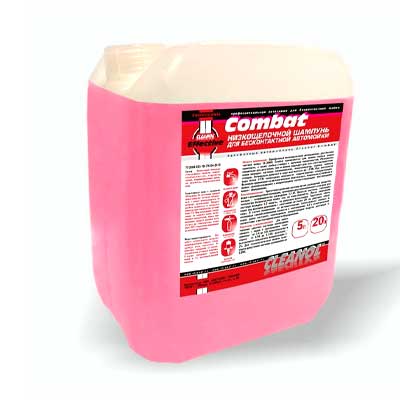 Cleanol Combat разработано для использования в дозирующих системах типа Dosatron, предназначено для бесконтактной мойки автомобилей. Эффективен в жесткой воде, рабочий раствор стабилен (не выпадает, забивающий трубки оборудования, осадок).Область примененияОднофазный низкощелочной автошампунь для бесконтактной мойки CLEANOL Combat применяется для мойки любых видов транспорта, а так же любых стойких к щелочам поверхностей. Подходит для любых систем приготовления моющего раствора (пенокомплект, пеногенератор, спреер, дозатрон, пенные станции). Оптимально работает в воде жесткостью до 15 °Ж. При жесткости воды более 15 °Ж необходимо произвести корректировку концентрации.Возможно применение на автоматических (портальных, тоннельных) мойках и автомойках самообслуживания в концентрациях соответствующим инструкциям вашего оборудования.Способ примененияПриготовить рабочий раствор путем разведения средства водой в рекомендуемой пропорции, пропорция для пенокомплекта указана для насадок с коэффициентом разведения 12-15.Нанести раствор, соблюдая технологию бесконтактной мойки. После нанесения раствора выждать 1-2 минуты, не допуская высыхания. Тщательно сбить водой под высоким давлением с расстояния не более 20 см снизу вверх.В случае применения на автоматических (портальных) мойках и автомойках самообслуживания развести в соотношении 1:2 с осмотической водой, далее настроить необходимую концентрацию подачи раствора в соответствии с инструкциями вашего оборудования.СоставКомпозиция поверхностно-активных веществ, комплексообразователи, гидроксид натрия, модифицирующие добавки, краситель, подготовленная вода.Меры предосторожностиПри работе использовать средства индивидуальной защиты (спецодежду, очки, перчатки). Не допускать попадания на слизистые оболочки и кожные покровы. В случае попадания промыть водой и 1% раствором борной кислоты.Условия храненияПродукт должен храниться в закрытых емкостях при температуре не ниже плюс 5 °С. При охлаждении (замерзании) не снижает своих качественных показателей, перед применением продукт должен быть отогрет до температуры выше плюс 20 °С и тщательно перемешан до полного растворения.Гарантийный срок хранения 18 месяцев.По истечении данного срока средство остаётся безопасным и может использоваться по прямому назначению.Подготовка к использованиюДля приготовления рабочего раствора необходимо смешать с водой в соотношении:- пенокомплект от 1:4 до 1:9- пеногенератор от 1:50 до 1:100- дозатрон 1-2%Для технологической мойки транспорта допустимое значение разведения до 1:200.