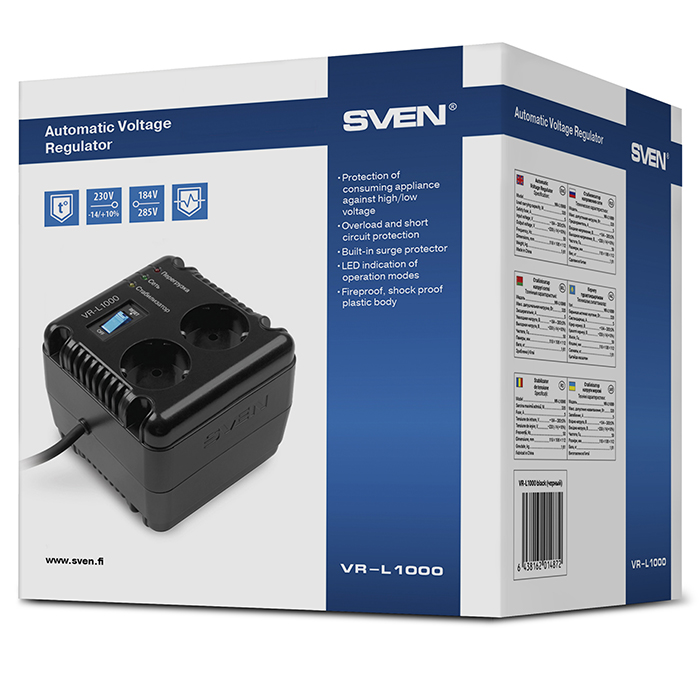 SVEN VR-L1000, 320W, Automatic Voltage Regulator, 2x Schuko outlets,
