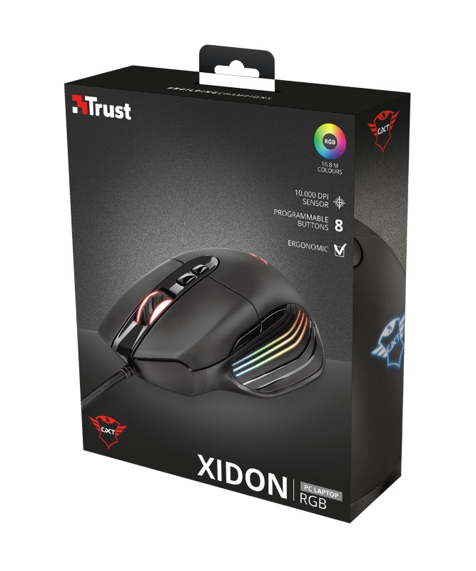 Trust Gaming GXT 940 Xidon RGB Mouse, 200 - 10000 dpi, 8 Programmable button, RGB lighting, 1,8 m USB, Black