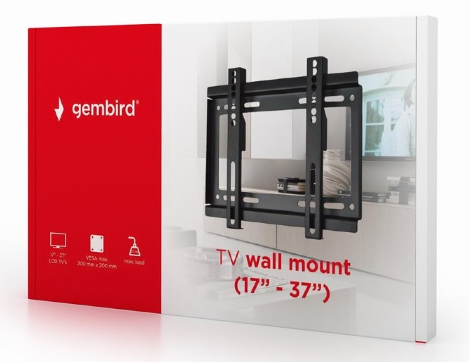 TV-Wall Mount for 17-37"- Gembird "WM-37F-01", Fixed, max. 25 kg, Distance TV to Wall: 24 mm, max. VESA 200 x 200, Black